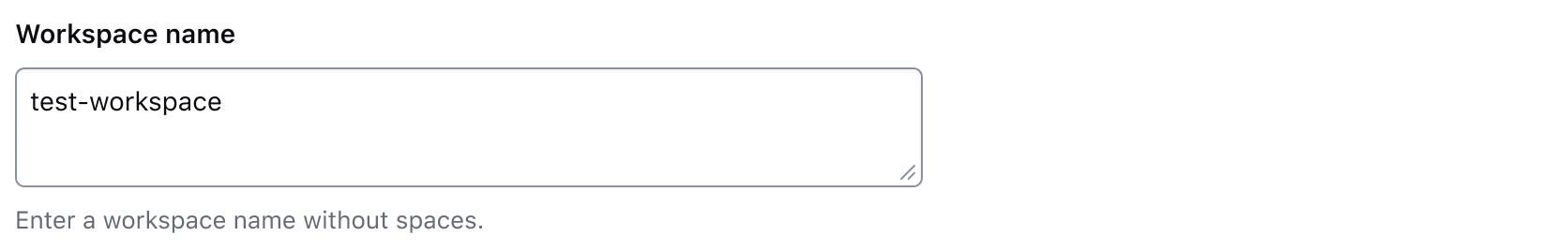 A workspace name textarea with the text "work" entered. If the character count is showing current length, it reads "4 characters entered". If maximum length, it reads "21 characters remaining". If minimum length, it reads "1 character remaining".